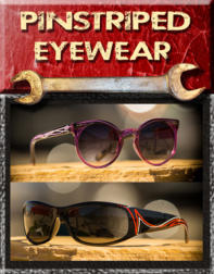 After   the   release   and   worldwide   success   of my   cult   hot   rod   film   DEUCE   OF   SPADES ,      I decided   it   was   time   to   pick   up   a   pinstriping brush.   In   just   a   year   or   so   I   found   myself creating    intricate    pinstriping    designs    and my   lines   became   thinner,   more   even   and precise.   Sitting   in   the   back   of   my   tour   bus,   I started     pinstriping     purses     and     biker’s wallets   then   decided   to   further   expand   into something   very   few   pinstripers   were   willing to    paint:    Glassware.    The    small    size    and sharp        curves        make        it        extremely challenging.    To    make    matter    worse,    you have   to   pinstripe   with   only   one   hand!   I   am proud    today    to    offer        a    comprehensive selection    of    every    glass,    mug,    and    cup imaginable…   My   glassware   art   has   traveled to      the      far      reaches      of      the      world, Switzerland, France, New Zealand…